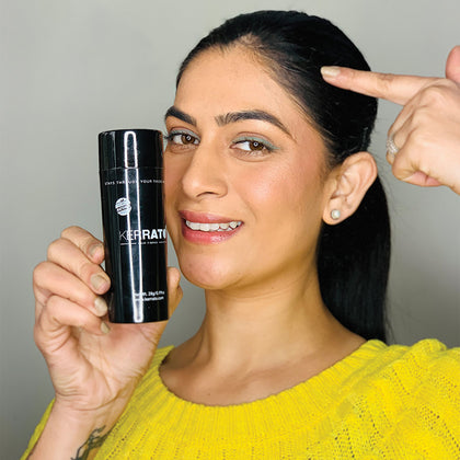 Kerrato is simple and clean. It's made from just two ingredients: 100% pure Keratin, a natural protein found in hair, and food-grade dyes that are approved by the USFDA. That means no unnecessary additives or harsh chemicals. With Kerrato, you get a safe and effective solution to make your hair look fuller and you can use it daily without harming your sensitive scalp. -